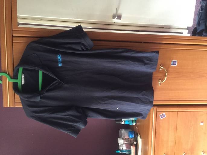 Blue workman/lady t-shirt with a small paint Mark on it.