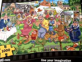 Four thousand piece jigsaws. Will separate . £6 each r four for £20. Four Wasgij and one Jan Van Haasteren come puzzle All complete. Van Haasteren.........The Holiday Fair Wasgij..................The Big Weigh in Grabbing a Quick Bit Highway Hold-up
