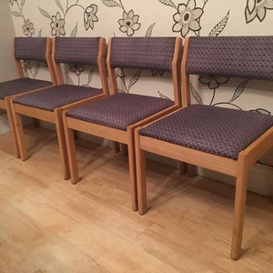 These 15 well made chairs by knightsbridge furniture of bradford are ideal for a small office area a cafe a restaurant takeaway or meeting room they have a good strong wooden frame and a wipe clean fabric covering i can deliver to the local bradford/halifax area for a £10 delivery charge