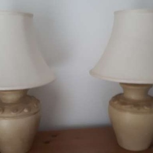 2 matching ceramic base table lamps with shades. 50 cm tall. Cream/Light Beige. Very good condition.