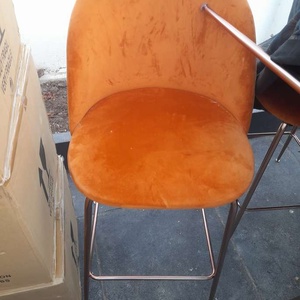 2 orange bar stools ideal for breakfast bar . Velvet . A few marks on them . Bargain at £15 each or £25 the pair
