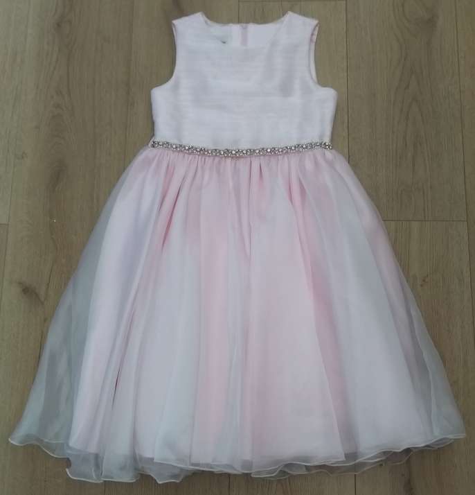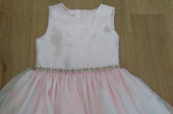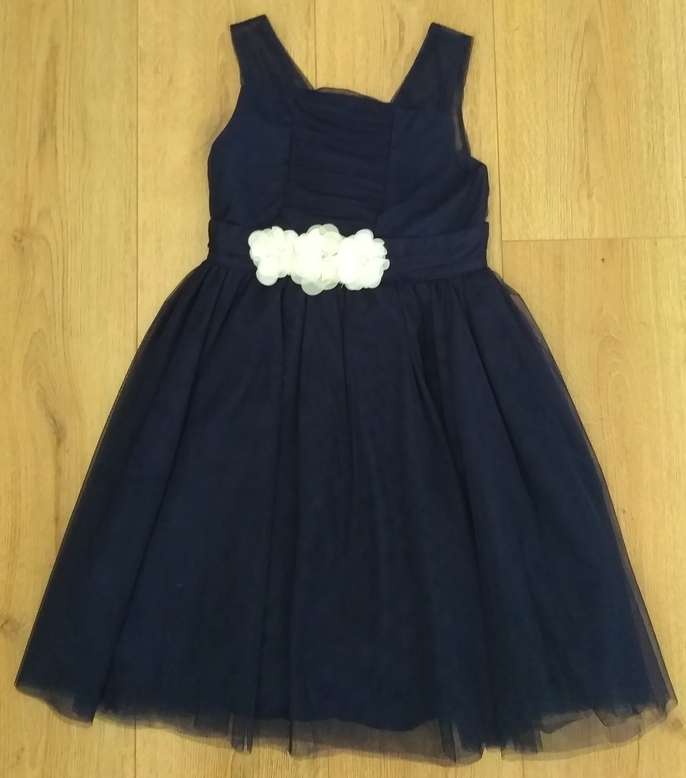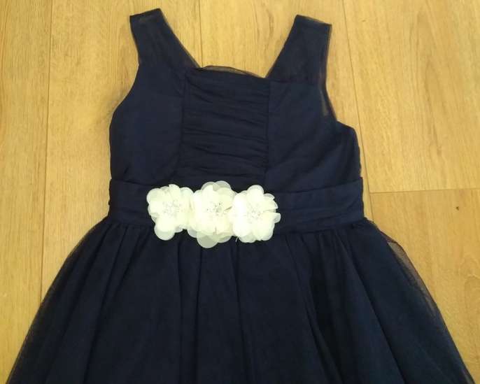Two party dresses for sale: one pink and one dark blue. Both have only been worn once. They are machine washable. From a smoke free home.