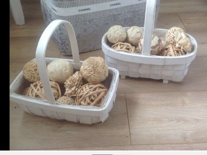 2 white baskets plus balls This item is in Liphook GB All the details Lovely white baskets with declarative balls Price 10.00 Time Remaining This listing has finished Category Home & Garden Post Message