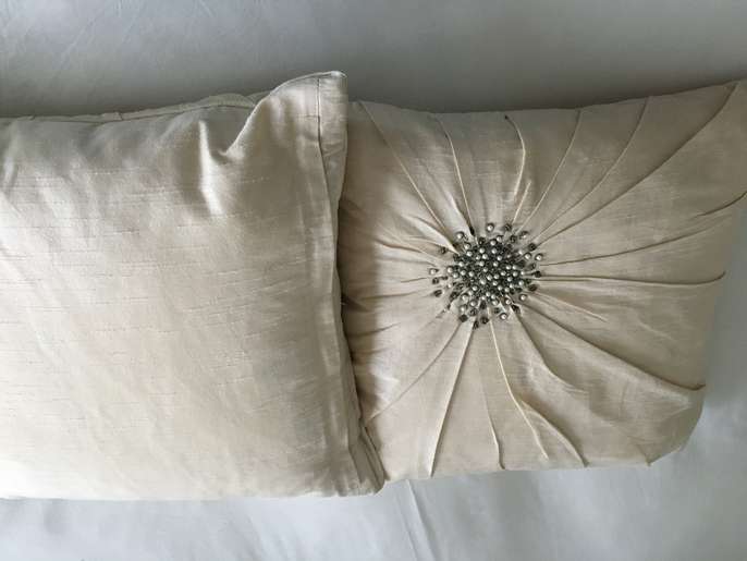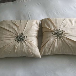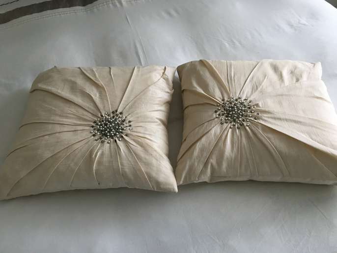 2 x Lovely Laura Ashley Cushions in great condition. Approx size 16" x 16" Cream colour with lovely beaded detail on the front - the backs are plain. Zipped