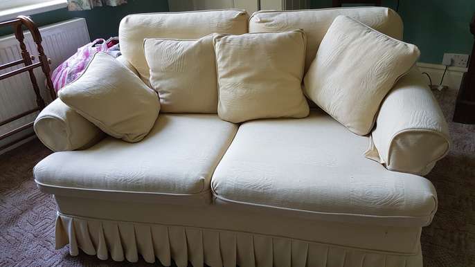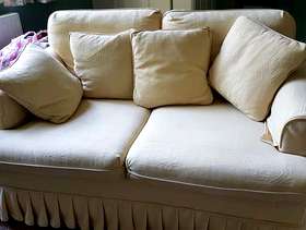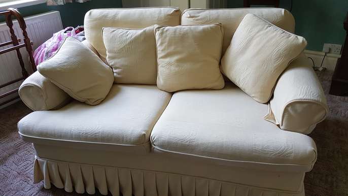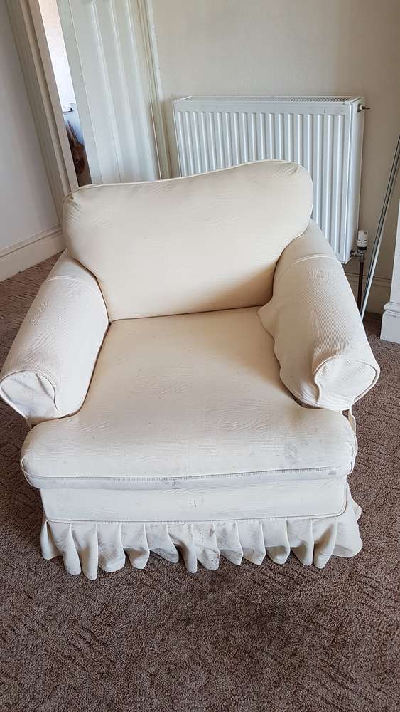 Yellow covered arm chair and 2 2 seater couches. They come from marks and spencers. Used. Washable covers.