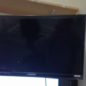 Wall mounted 24" colour TV with built in dvd player in back.