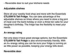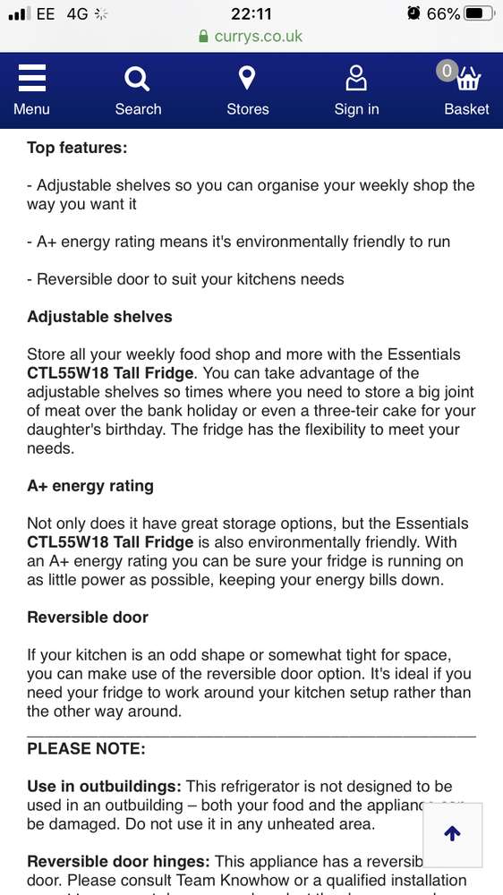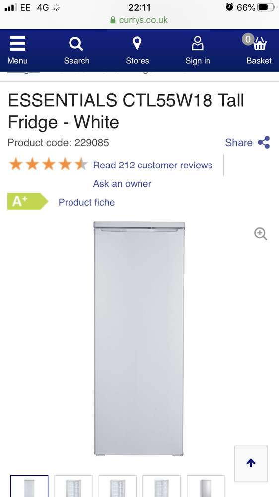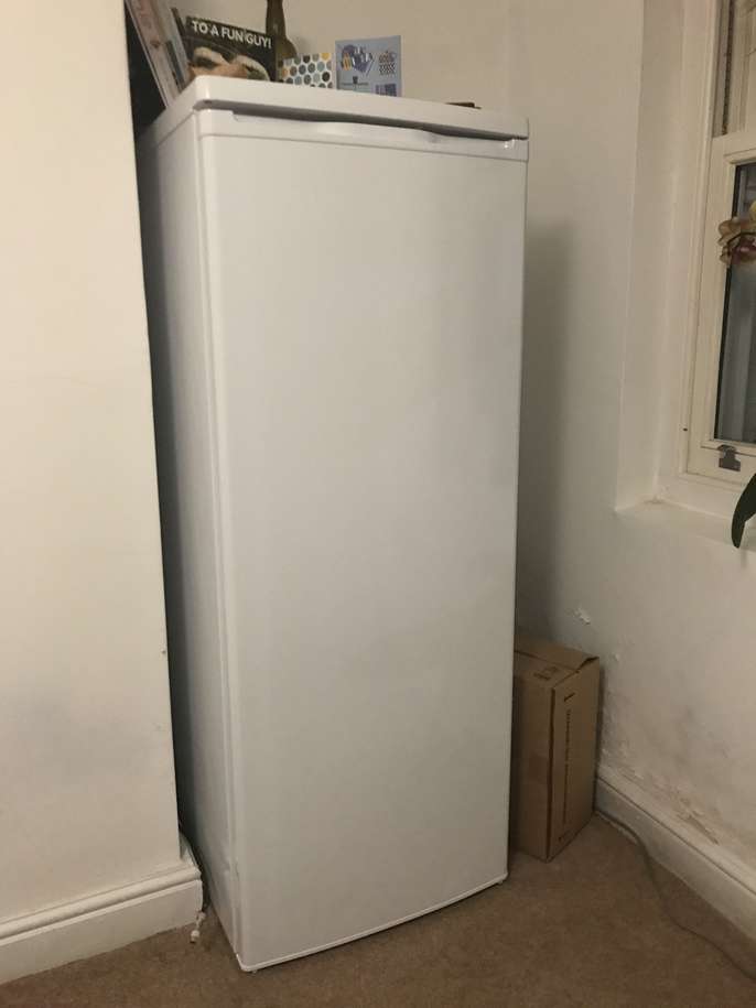 We brought this as a second fridge in our share house 3 months ago, but are now needing to move with no space in the new place. It’s silent, cold, fully working fridge. Bought from currys - ESSENTIALS CTL55W18 Tall Fridge - White Product features: 143 x 55 x 58 cm (H x W x D) Capacity: 240 litres Reversible door to open the door from either side Must be picked up by Friday 20th Dec.