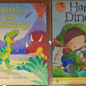 2x Dinosaur Books for young children - 'Harry and the dinosaurs go wild' Join Harry on an exciting adventure to see some animals at the safari park with the Harry And The Dinosaurs Go Wild Book. Once Harry gets to the park he sadly discovers that some animals are in danger of becoming extinct! Follow him through this immense adventure and learn that no matter how small you are, you can still make a big difference! A great read for the family. - 'Say hello to the dinosaurs' (with 'touch & feel' scaly dinosaurs on each page to experience) Join the baby tyrannosaurus rex as he meets lots of other dinosaurs in this prehistoric adventure. From the hungry diplodocus to the powerful triceratops, toddlers will love saying hello to all their favourite dinosaurs and joining in with the noises. Great condition, comes from a smoke free home Collection Only - Please see my other items for girls clothes, books, puzzles, toys, games and much more