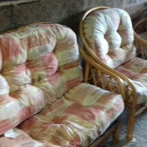 2 seat sofa and 2 chairs . Cane / rattan . Fire safety labels . Need minor attention . Ideal for conservatory .