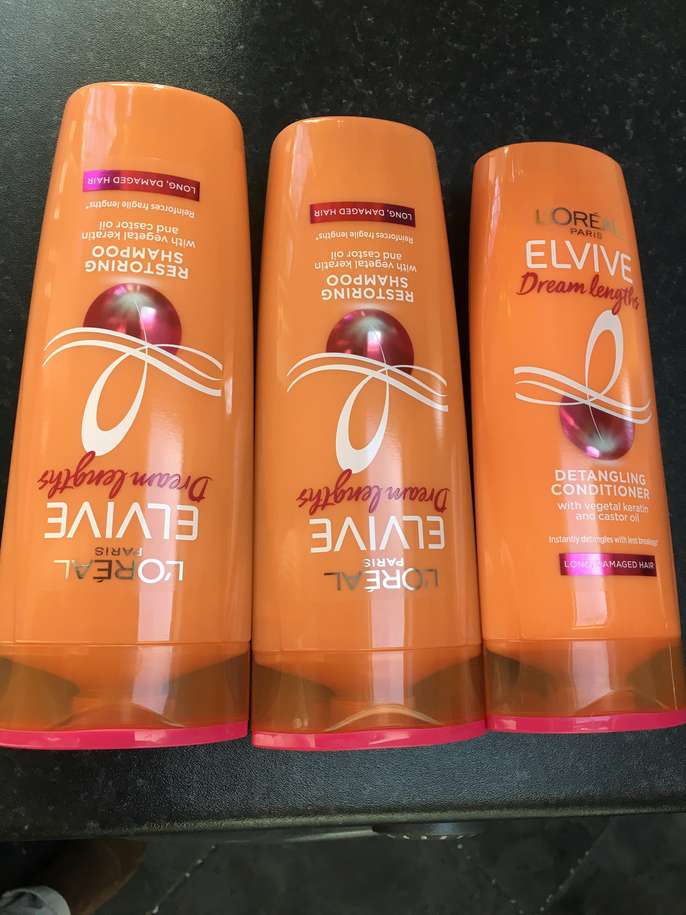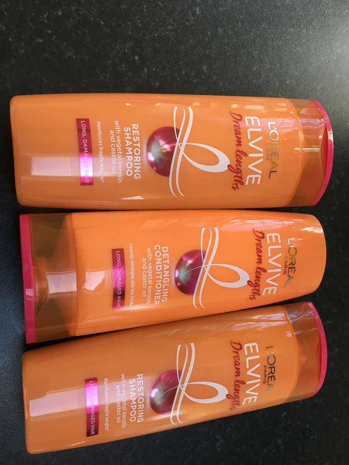 3 Brand New Loreal Products 2 x 400ml Bottles of Restoring Shampoo for long damaged hair 1 x 400ml Detangling Conditioner