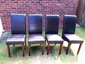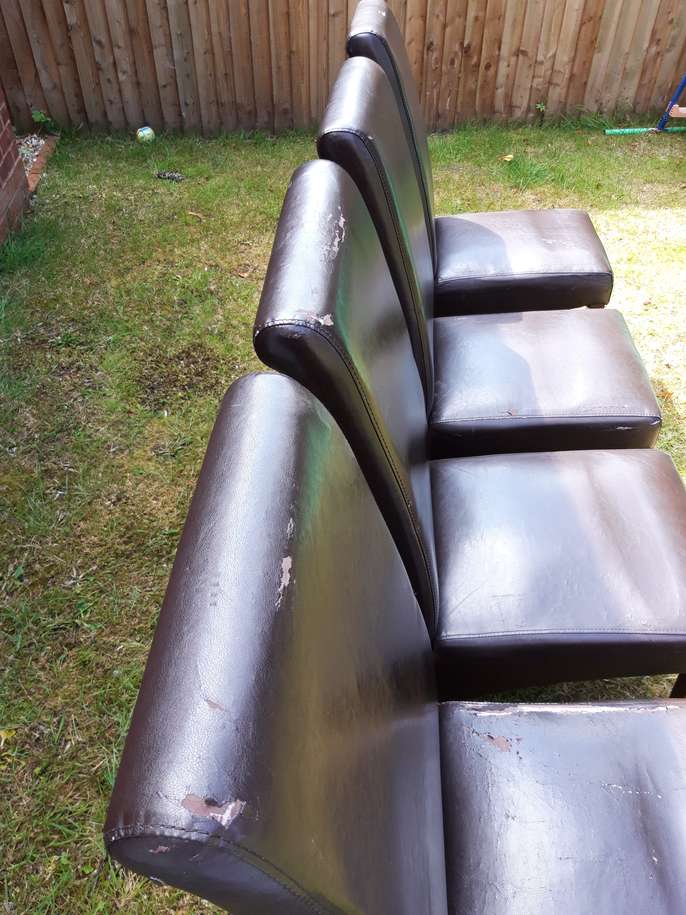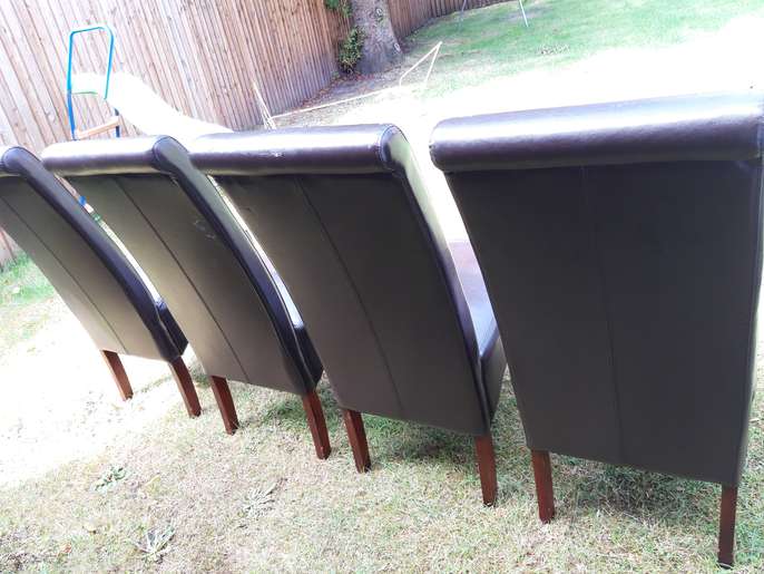 4 brown faux leather chairs This item is in Droitwich Spa GB All the details Used but in good condition . Do show signs of wear Price £28 ono Time Remaining This listing has finished Category Home & Garden Post Message
