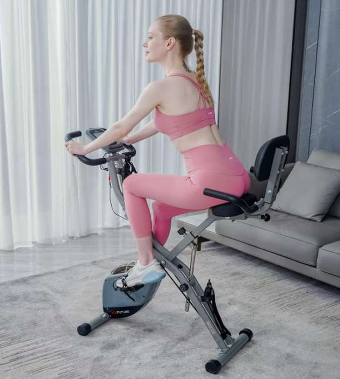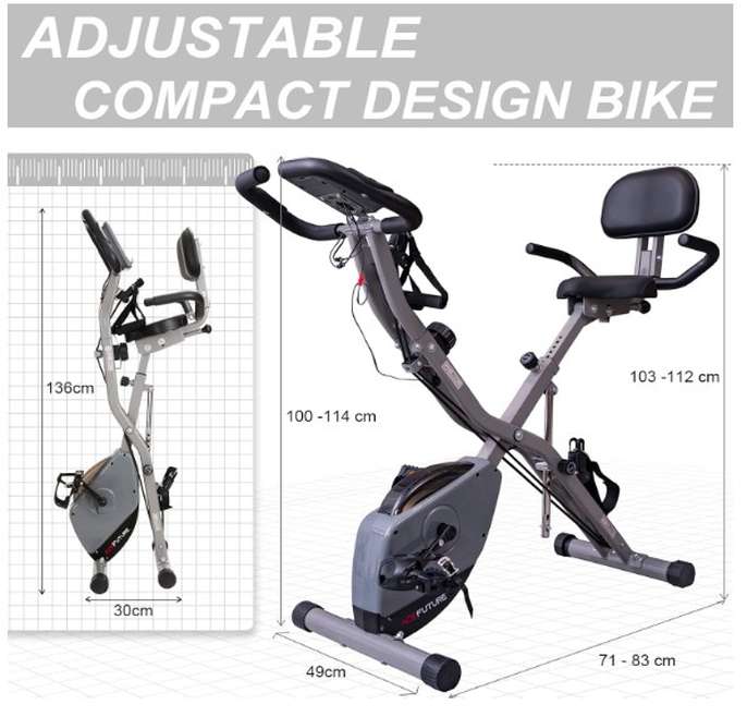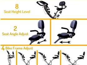 NEARLY NEW - BARGAIN AT £90 COLLECTION ONLY FROM LOUGHTON, ESSEX CASH ON COLLECTION - NO BANK TRANSFERS! PHONE/TEXT - DO NOT MESSAGE AS RARELY READ MESSAGES 07956 466 030 AceFuture 4-IN-1 Exercise Bike for Home Use, Folding Indoor Stationary Cycling Bike with Arm/Leg Workout Bands,16 Levels Magnetic Resistance Fitness Bicycle with Hand Pulse and Phone/Tablet Holder About this item 【3-IN-1 Bike Frame】 This home exercise bike’s frame can adjust between the Upright, Semi Recumbent and Recumbent type, which is particularly fit for Short or Seniors who may have difficulty getting on the exercise bike. 【Add-on Arm/Leg Exercise】 Attached Arm and Leg Resistance Bands work the upper body and leg to make a full-body workout. 【16 Level Magnetic】The Brand-new 16 level manual control magnetic tension offers flexible adjustment. You can enjoy a smooth and quiet cycling experience at home. 【Comfortable Seat】 Suitable for different sizes of people. 8 Seat height adjustments; 2 Seat angle adjustments. 【Comfortable Backrest】 It is equipped backrest on exercise bike that can support your back, comfort and ease potential pain in your back after a long time of exercise. 【Traceable】 Track your progress with a big LCD Display that shows Time, Speed, Pulse, Distance, Calories. Built-in Phone/Tablet Holder can stand all of the smart phone, ipad, etc. 【Easy to Assemble】We provide an easy-read manual and step-by-step assembly video, even if you are not good at this, you can complete the assembly work on your own. Save a handy man's cost. 【Save Space】 It can easily fold away and be a compact space-saving cycle equipment. Come with transport wheels for you to move the exercise bike easily at your home gym. 【Great Gifts for Family】You will get a smooth and quiet low impact folding cycling bike. It helps you do cardio workouts at home, keep fitness and gain stamina anytime. NEARLY NEW - BARGAIN AT £90 COLLECTION ONLY FROM LOUGHTON, ESSEX CASH ON COLLECTION - NO BANK TRANSFERS! PHONE/TEXT - DO NOT MESSAGE AS RARELY READ MESSAGES 07956 466 030