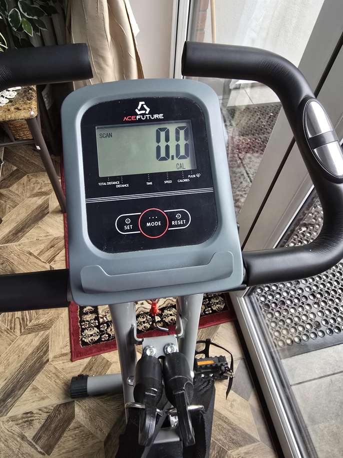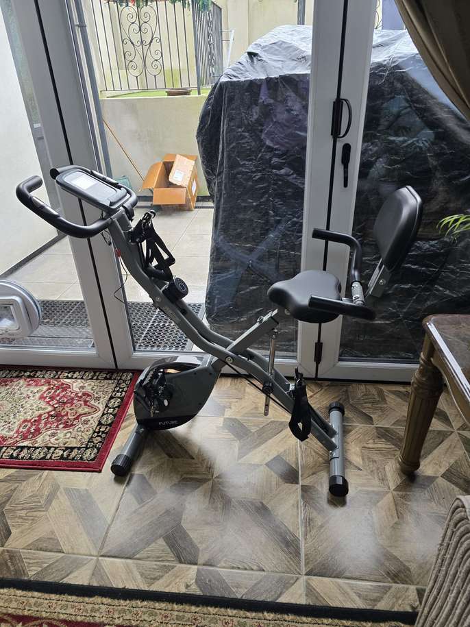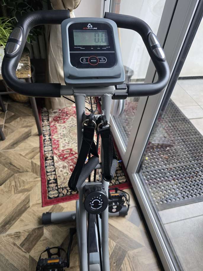 NEARLY NEW - BARGAIN AT £90 ONO NEW COST IS £125 COLLECTION ONLY FROM LOUGHTON, ESSEX CASH ON COLLECTION - NO BANK TRANSFERS! PHONE/TEXT - DO NOT MESSAGE AS RARELY READ MESSAGES 07956 466 030 AceFuture 4-IN-1 Exercise Bike for Home Use, Folding Indoor Stationary Cycling Bike with Arm/Leg Workout Bands,16 Levels Magnetic Resistance Fitness Bicycle with Hand Pulse and Phone/Tablet Holder About this item 【3-IN-1 Bike Frame】 This home exercise bike’s frame can adjust between the Upright, Semi Recumbent and Recumbent type, which is particularly fit for Short or Seniors who may have difficulty getting on the exercise bike. 【Add-on Arm/Leg Exercise】 Attached Arm and Leg Resistance Bands work the upper body and leg to make a full-body workout. 【16 Level Magnetic】The Brand-new 16 level manual control magnetic tension offers flexible adjustment. You can enjoy a smooth and quiet cycling experience at home. 【Comfortable Seat】 Suitable for different sizes of people. 8 Seat height adjustments; 2 Seat angle adjustments. 【Comfortable Backrest】 It is equipped backrest on exercise bike that can support your back, comfort and ease potential pain in your back after a long time of exercise. 【Traceable】 Track your progress with a big LCD Display that shows Time, Speed, Pulse, Distance, Calories. Built-in Phone/Tablet Holder can stand all of the smart phone, ipad, etc. 【Easy to Assemble】We provide an easy-read manual and step-by-step assembly video, even if you are not good at this, you can complete the assembly work on your own. Save a handy man's cost. 【Save Space】 It can easily fold away and be a compact space-saving cycle equipment. Come with transport wheels for you to move the exercise bike easily at your home gym. 【Great Gifts for Family】You will get a smooth and quiet low impact folding cycling bike. It helps you do cardio workouts at home, keep fitness and gain stamina anytime. NEARLY NEW - BARGAIN AT £90 ONO NEW COST IS £125 COLLECTION ONLY FROM LOUGHTON, ESSEX CASH ON COLLECTION - NO BANK TRANSFERS! PHONE/TEXT - DO NOT MESSAGE AS RARELY READ MESSAGES 07956 466 030