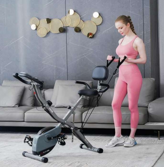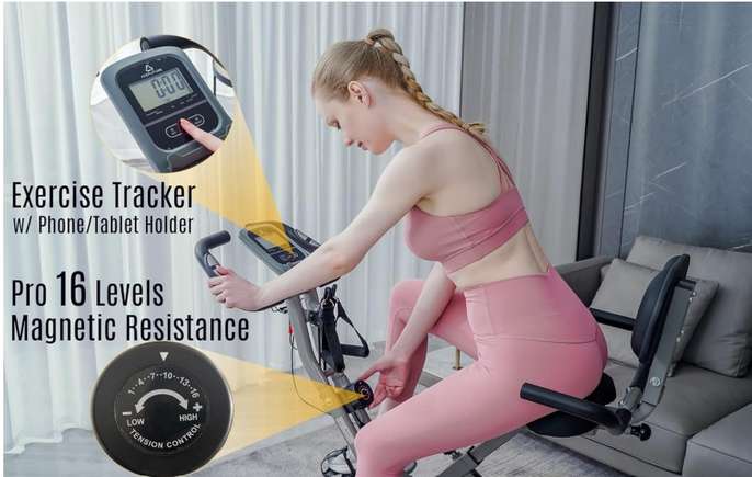 4-IN-1 Exercise Bike for Home Use, Folding Indoor Stationary Cycling Bike