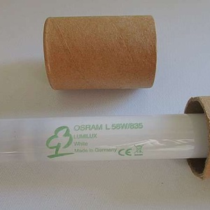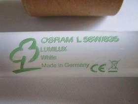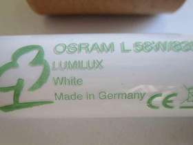 4 No. OSRAM L58W/835 LUMILUX FLUORESCENT TUBES – 5FT LONG 4 No. Osram L58W 835 Lumilux 150cm Cool White – 5ft Long From a domestic garage, these ‘slimline’ (1”/26mm diameter) tubes have now been replaced with the LED type and were in full working order when they were removed. Each one is in a sturdy, foam-lined, protective cardboard tube (which its replacement arrived in!). The following data was obtained from the internet: • L 58W/835 Fluorescent Tubes • Energy efficiency class A • Average Lifetime (h) 18000 • Dimmable Yes, with dimmable ballast only • Socket G13 • Colour Code 835 - Standard White • Light Output (Lumen) 5200 • Beam Angle (degree) 360 • Requires Ballast Yes
