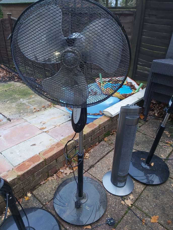 4 x fans Been stored in our garage so need a good clean up and some TLC. Not sure if working or not so needs someone that can maybe fix them. Free to collect