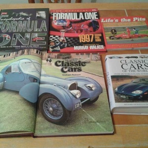 5 x Automotive Books Encyclopedia of Formula One Formula One 1997 Classic Cars Classic Cars of The World Life's the Pits Collection only. £8 for 4 Books. Thank you.