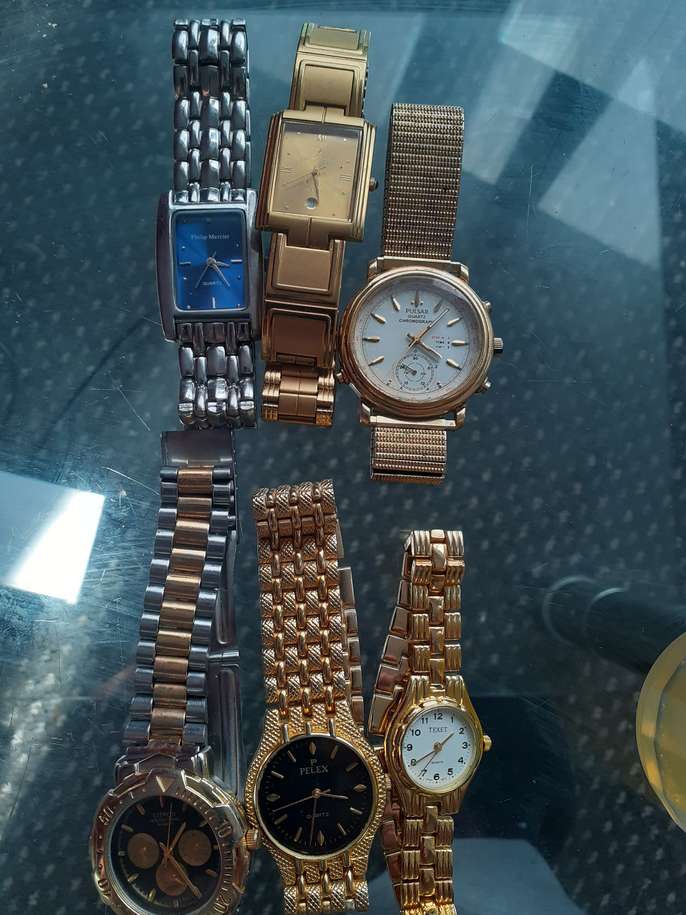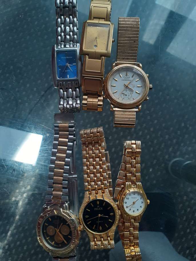 6 watches for sale unchecked believe all they require is new batteries £15 the lot Telephone 07762952431