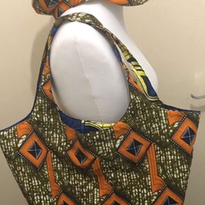 Its a reversable bag with 2 different african prints. It can be used for work or a simple day at the beach and a hat to go with it.