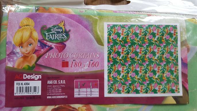 AG deisgn Disney light/PES Multi-Colour FAIRES PHOTO CURTAINS Approx 180x160 cm / 71x63 inches. Only 5Packs ONLY £15 a Pack Amazing for anyone who loves Faires and wants Faires. Please Note they are not curtains but hang on top of your existing curtains or pole. PHOTO CURTAINS Premium collection by AG Design 180 x 160 cm, consists of 2 pieces These photo curtains (AG Design PHOTO CURTAINS) are produced by the method of wide format digital textile printing on different textile material with print width 180 cm. The printing is provided on synthetic and blended fabrics (the content is not less than 60%). The delivery set includes an innovative hooks system suitable for all types of curtain rails and all AG Design PHOTO CURTAINS collection are provided with a special tape on the reversed side what ensures a quick fix method of the window decoration. The delivery set contains a sufficient number of hooks I draw your attention to the fact that these photo curtains - AG Design PHOTO CURTAINS - are manufactured by A&G Co. s.r.o. in the Czech Republic and all materials used are 100% of European origin. Product code FCS XL 4354 Collection Churchtown or postage prices on request.