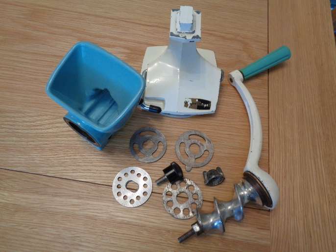 Antique mincer complete This item is in Monmouth GB All the details ANTIQUE MEAT Mincer with various cutting discs. This is complete, nice condition. Price £5 Time Remaining This listing has finished Category Antiques Post Message