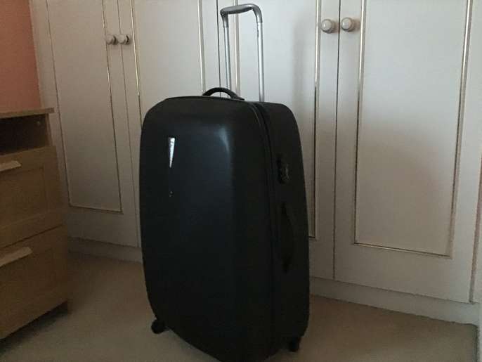 Hardly used large Antler hard-side suitcase. Size 80cm high, 48cm wide and 29cm deep.