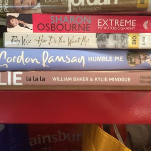 Autobiographies of Katie Price, Sharon Osbourne, Ruby Wax, Gordon Ramsey, Kylie. Proceeds to RNLI Collect Hemel Hempstead