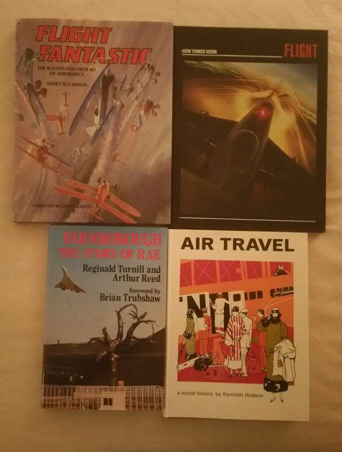 9 aviation themed books. All good condition. Radio Control Manual - Technical Publication Howard Hughes Aviator ( George J. Marrett) Flying Circus (Ernest K. Gann) Camera Above The Clouds (Charles E. Brown) Farnborough The Story of RAE (Reginald Turn hill & Arthur Reed) Air Travel - A Social History (Kenneth Hudson) How Things Work - Flight Flight Fantastic - The Illustrated History of Aerobatics (Annette Carson)