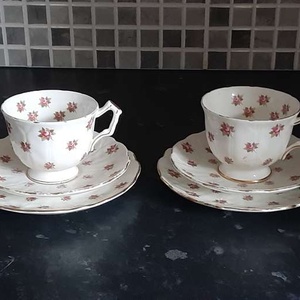 Aynsley Rosedale bone china. 2 x teacups. 2 x tea saucers. 2 x tea plates. Fair condition