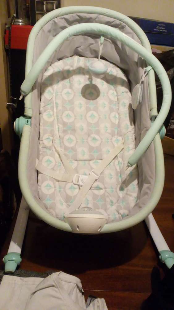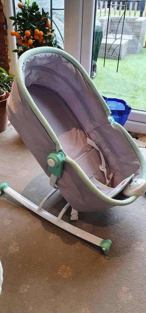 Very good condition plays heartbeat noise tunes vibrates soothes can be used as bed or chair ideal if need for family looking after small baby also put a shhet and cover in