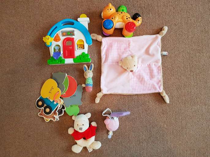 Baby Toy Bundle (7 toys) - £5 7 toys in this bundle, all in good condition and from a smoke free home: - Musical Activity House (comes with 2 x aaa batteries, doors & windows open to reveal and plays various musical noises) - Push & Go cat - Winnie the Pooh rattle - Rabbit rattle - Comforter - Rattle with words and colours Collection Only - see my other baby clothes, toys, books & other baby items for sale