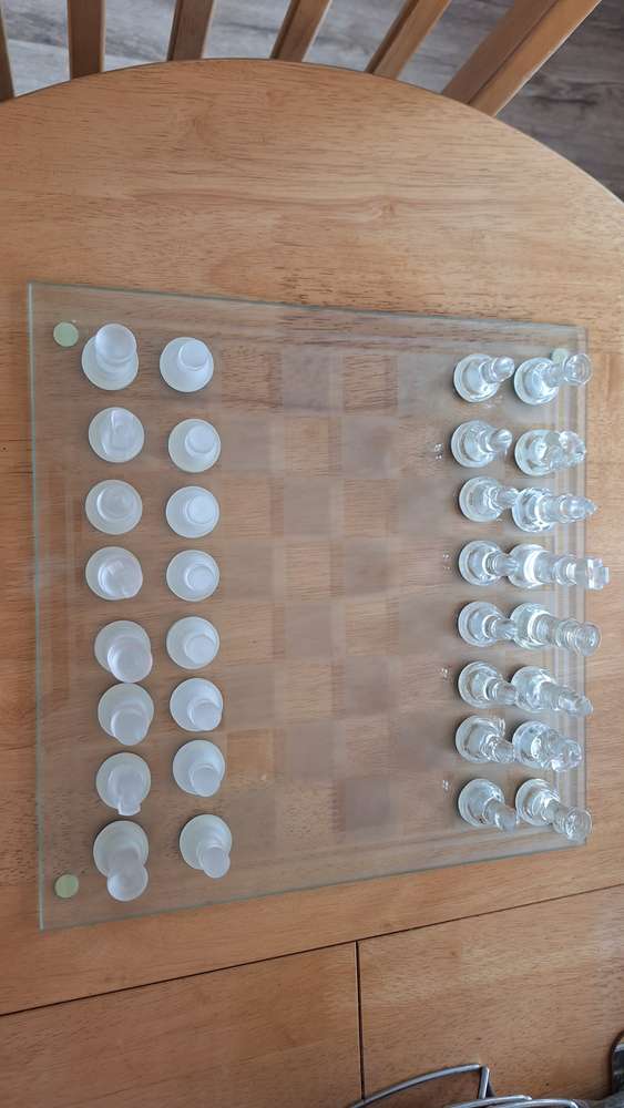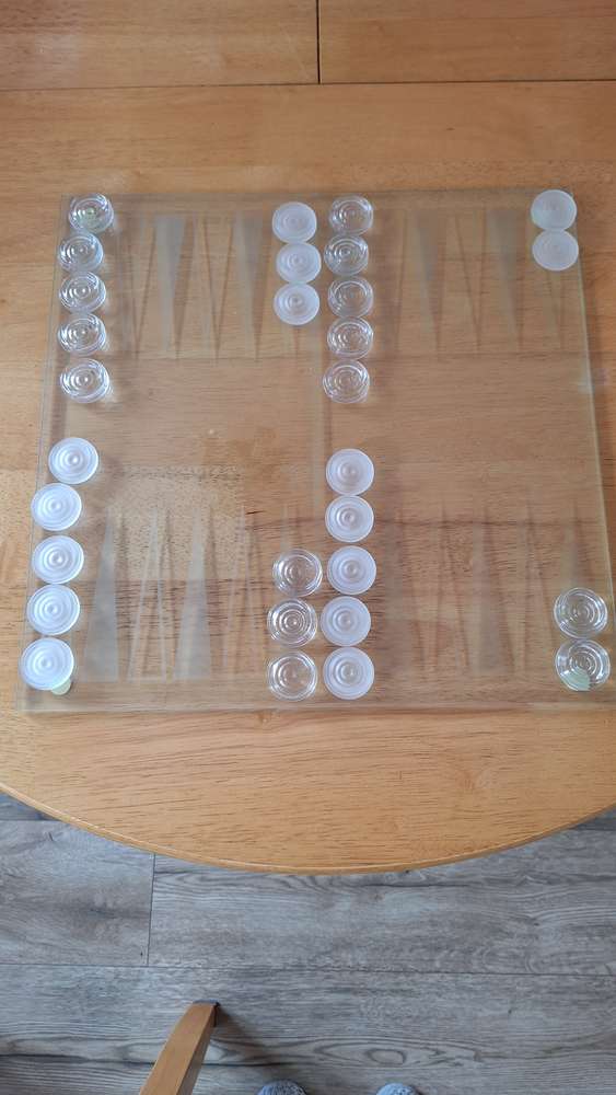 Draught and backgammon set in glass. All pieces are there and boards in very good condition. Must pick up from stockton