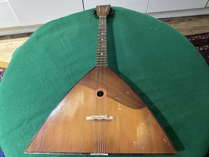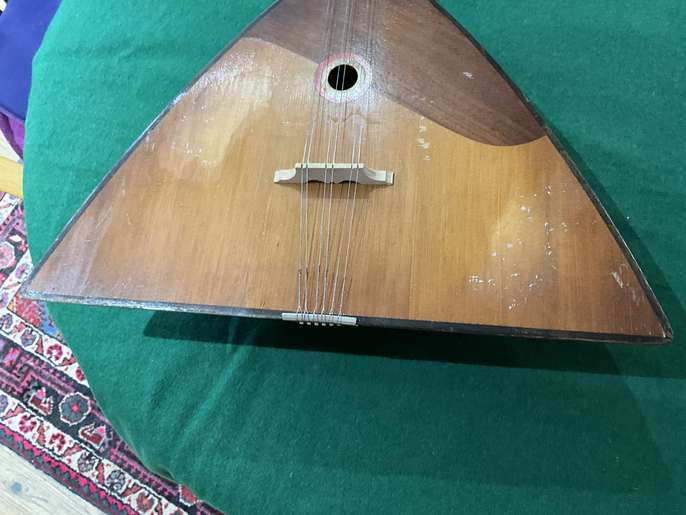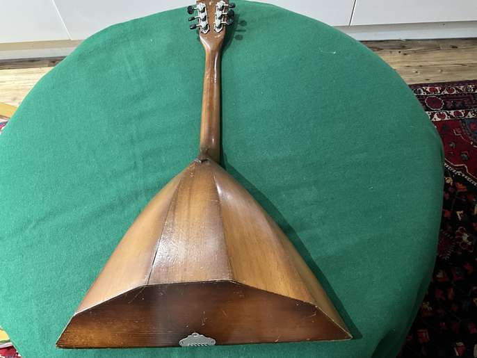 Balalika in very good condition. Unbranded. Other stringed instruments (vintage mandeline, Hemme ukulele, and ouds) also available, various prices.