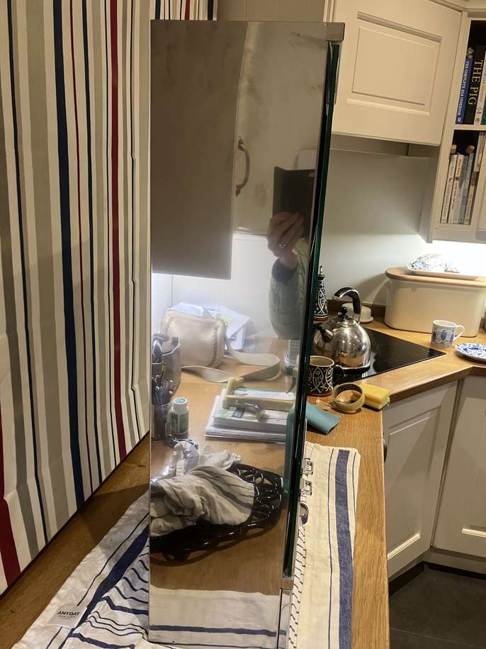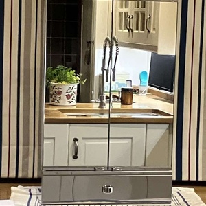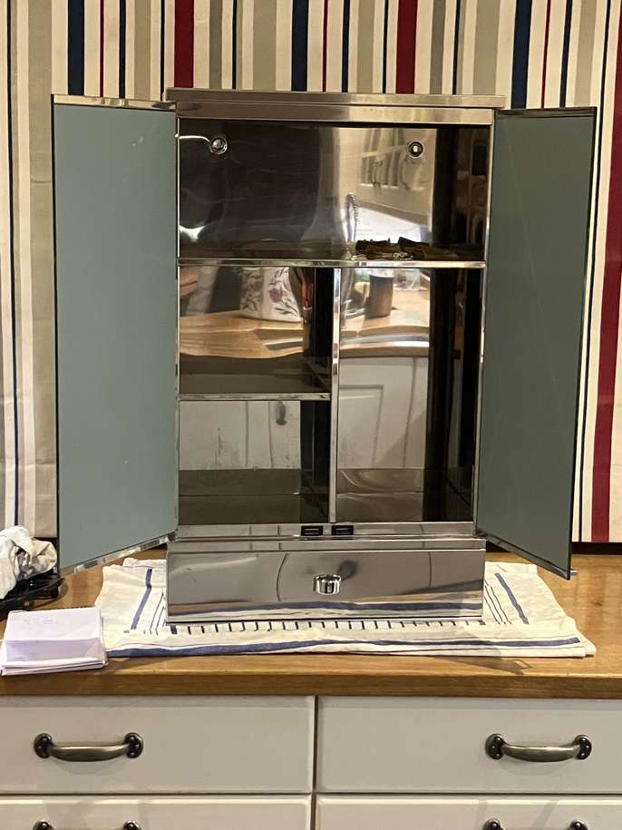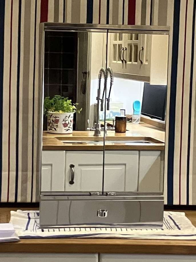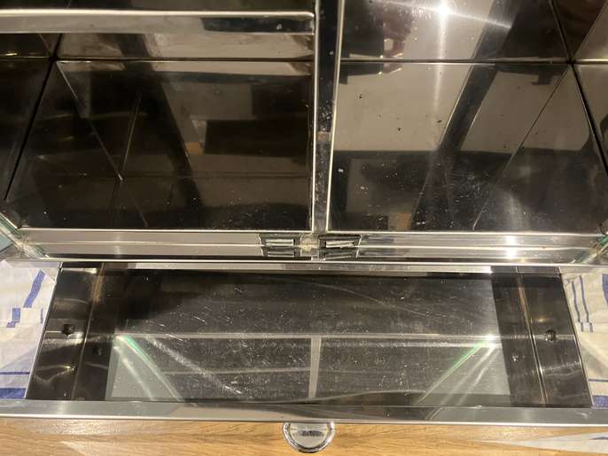 Glass fronted bathroom cabinet Mirrored internal with front drawer and internal shelving 45cm Wide 18cm deep 74cm high Fittings/screws included