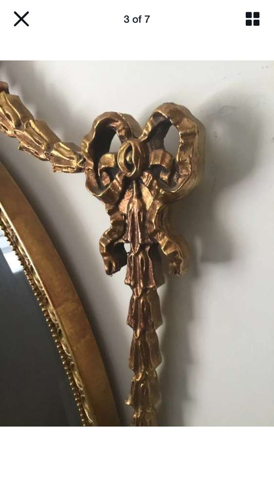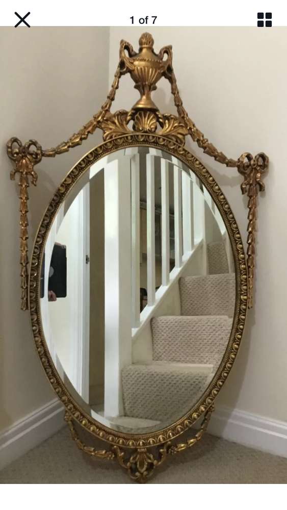 Beautiful Vintage Retro Ornate Floral “Gold” Gilt Oval Regency Mirror. Condition is Used. Collection in person only. Dimension of mirror 50cm x 70cm, frame overall is 104cm x 61cm to frame Edges.