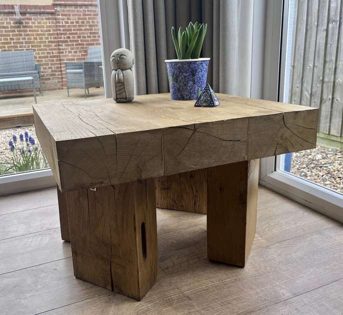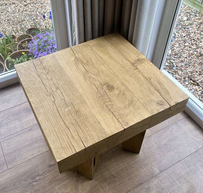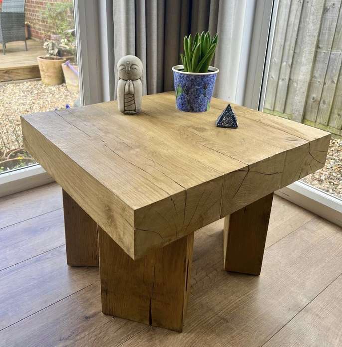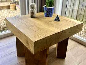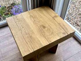 Oak Sleeper Coffee/Side Table Hand crafted rustic solid oak table. Dimensions (W57, D60, H40 cms). Collection from Bury St Edmunds.