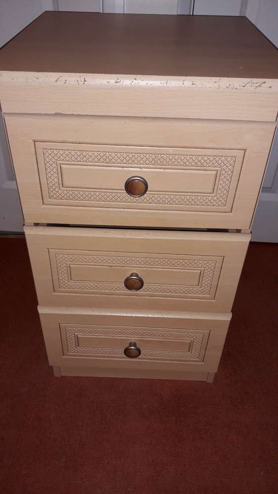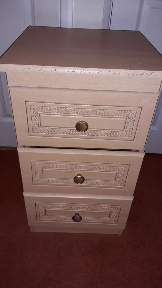 Bedside table light wood This item is in West Worthing GB All the details 3 drawer bedside table Fair condition Could be renovated Tel.07785 960713 Price £5 Time Remaining This listing has finished Category Furniture Post Message
