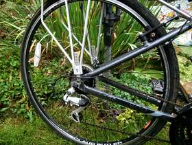 A Claud Butler bicycle, 16" frame, in good condition, little use, and has been in the garage for some time, but ready to ride! Possible swap for similar without a crossbar.