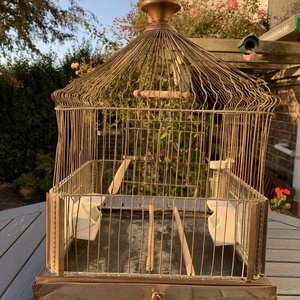 Original Victorian brass Bird Cage c/w feeding/water troughs and perches. Approx 11.5” square and 17” high