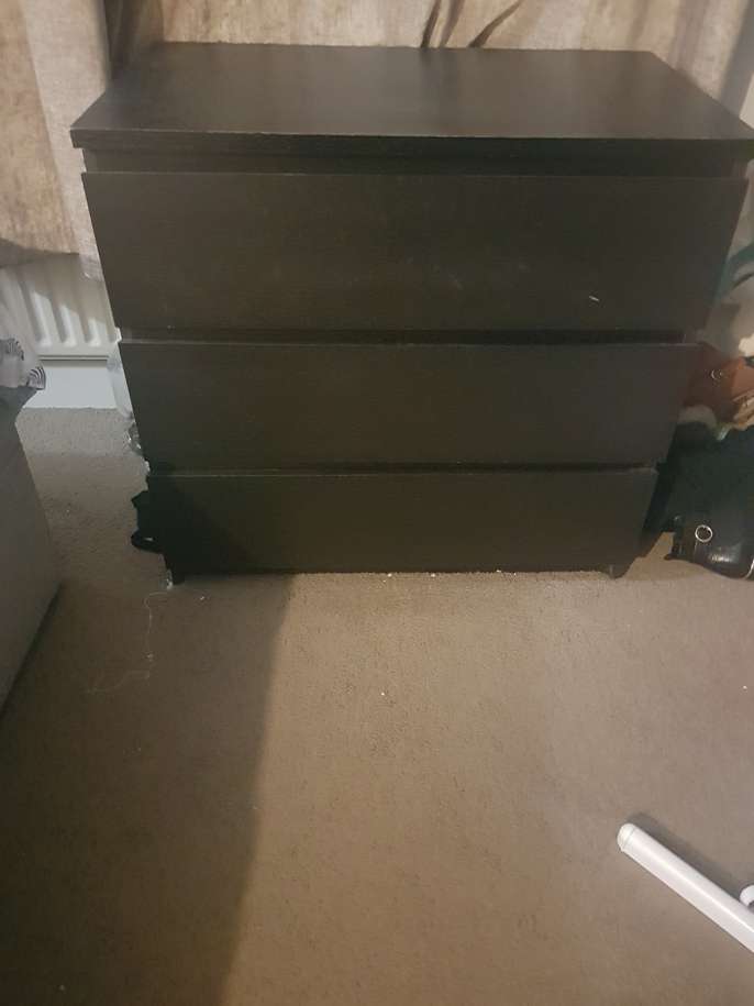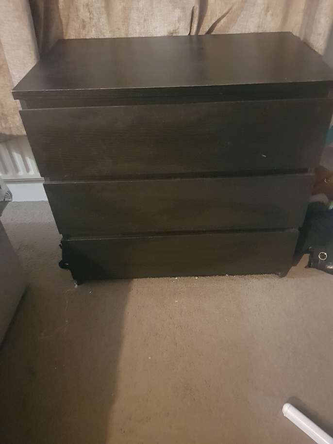Black chest of 3 drawers good condition H 30 " W 31 " D 19 " Pickup only from Chislehurst area cash on pick up from a smoke free environment