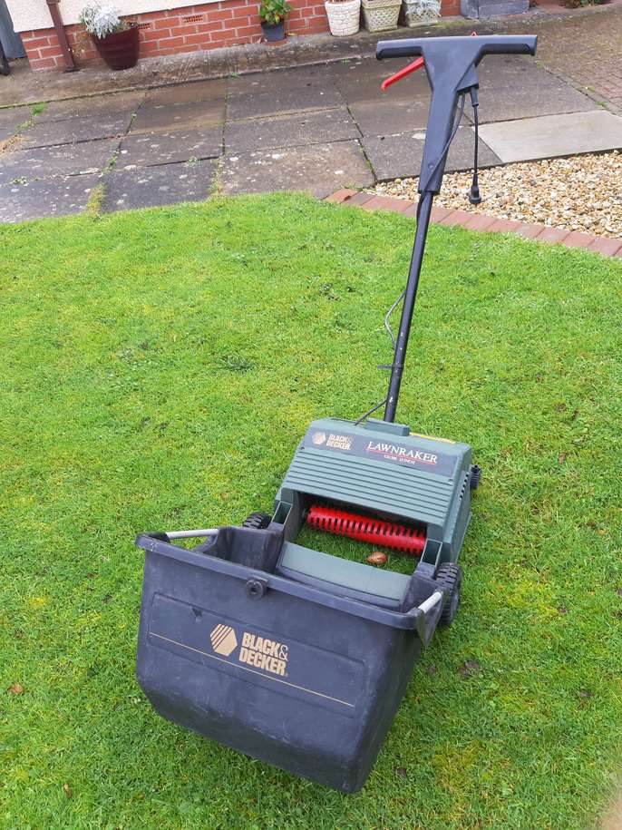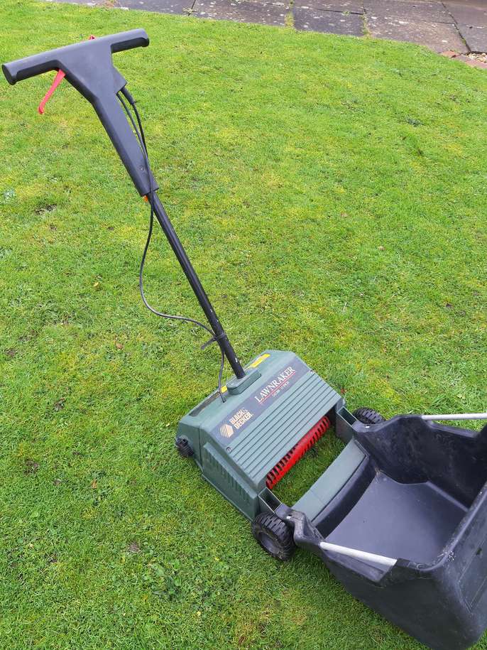 Black & Decker GD200 12-inch lawn raker/scarifier. In good condition but lacking a mains cable.