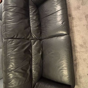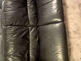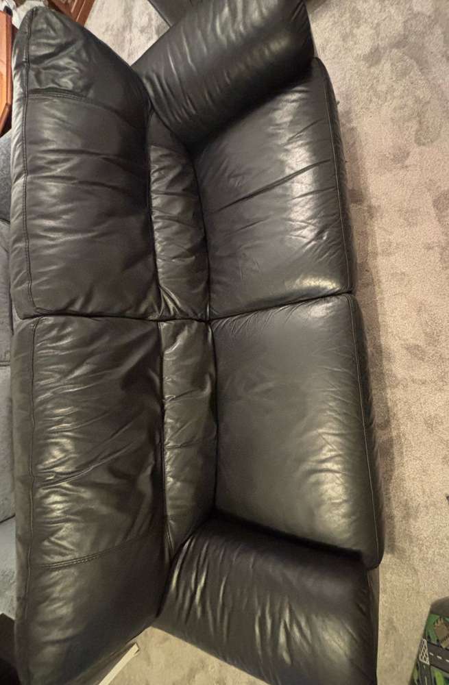 Black leather three seater settee. Good condition. Just selling as I need a higher seated sofa now.