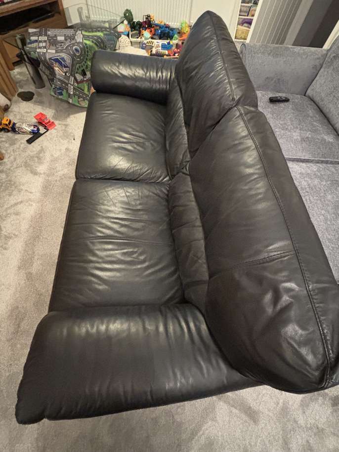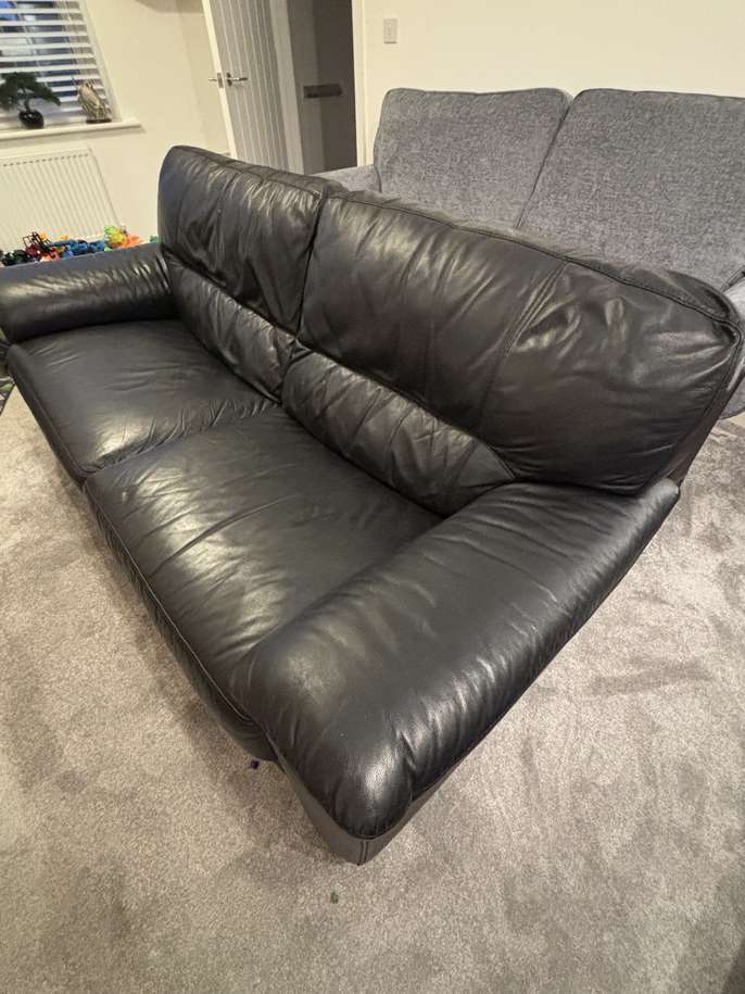Black good condition 3 seater real leather sofa. Need to sell immediately as already have a replacement . Sad to see it go though!!!