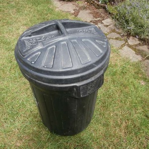80L capacity black plastic dustbin. Some slight damage to lid but useful bin for composting, etc. Collection only.