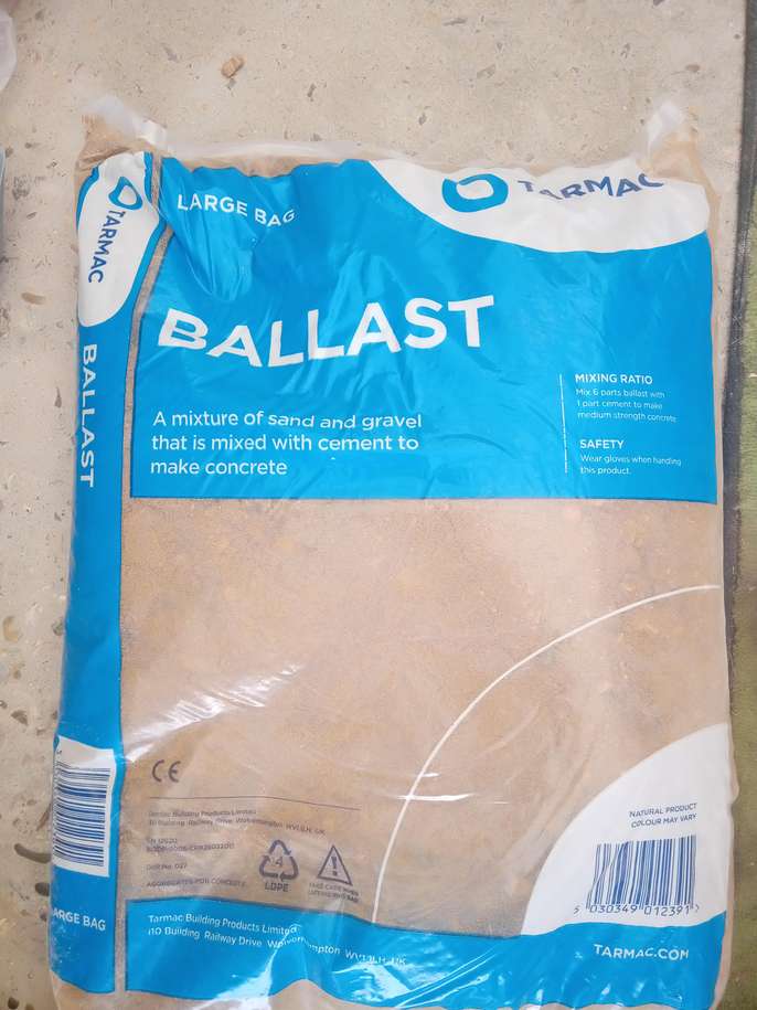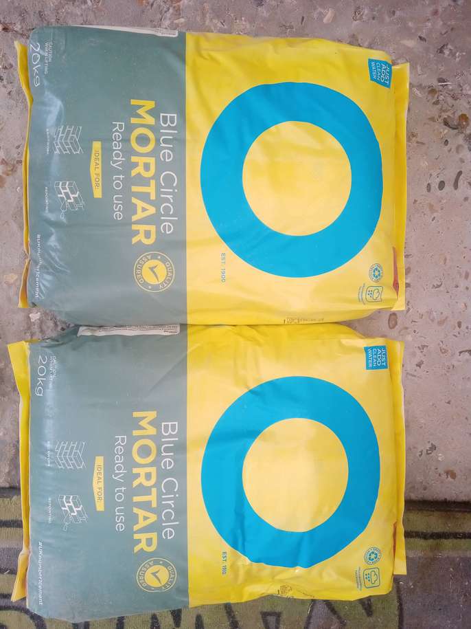 Two 20 kg bags of Blue Circle ready to use mortar, unopened. Mix of sand and cement, just add water and its ready to use. £5 per bag. One large bag of Tarmac Ballast sand, £1. Would need to collect. AL9 area