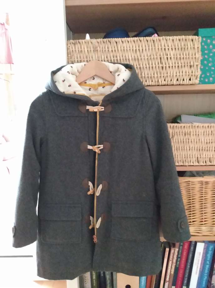 I have a duffle coat (Boden) which my daughter has unfortunately outgrown. Size 9-10 years. Completely lovely and intact.
