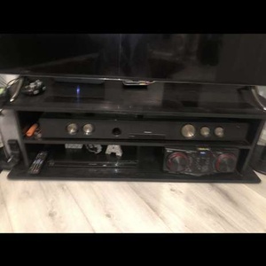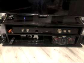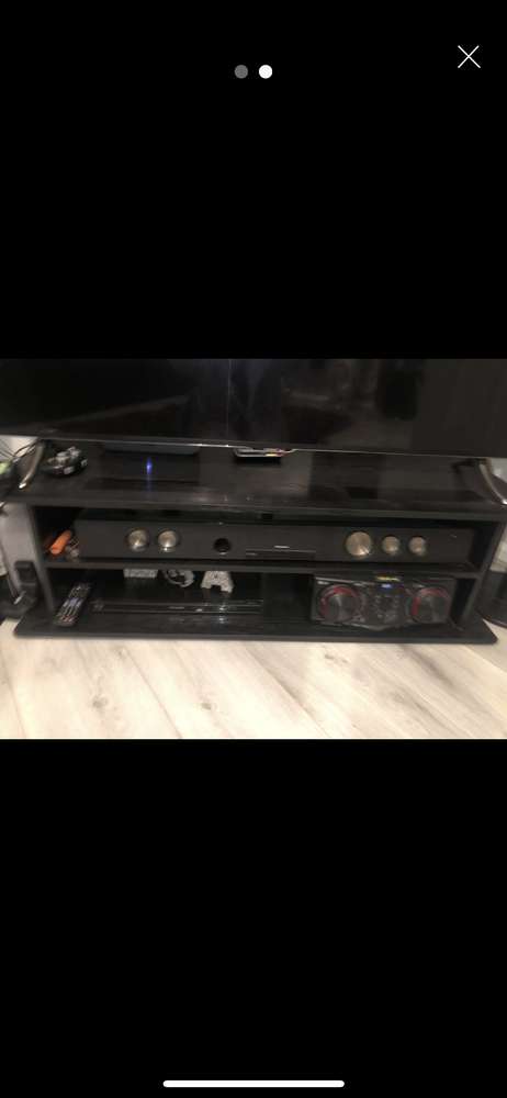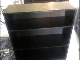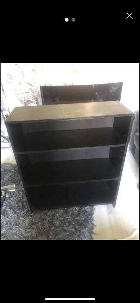 Black wooden tv unit 120cm wide and matching bookcase size 80 x 106 x 30 cm Both in good condition 10 pounds each