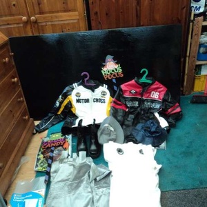 Far to much to list however there is boys jackets age 8+ - curtains - ladies boots size 5 - childs see saw - box of printer inks - light up xmas star and a load of other bits