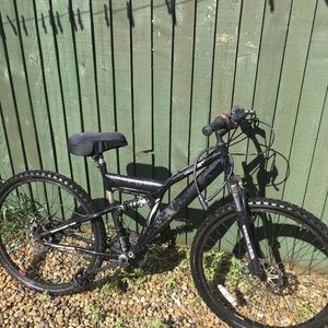 Boss Stealth men’s dual suspension mountain bike, 18” frame, 21 speed twist grip Shimano gears, mechanical disc brakes, 26” MTB off-road tyres, steel frame, suspension forks, front & rear mudguards, adjustable saddle & handlebars been standing couple of months so may need serviced £50