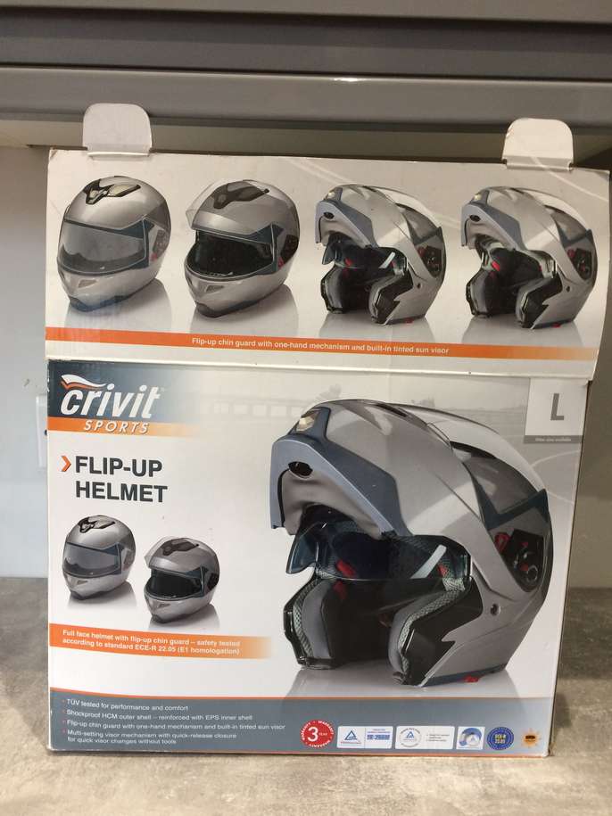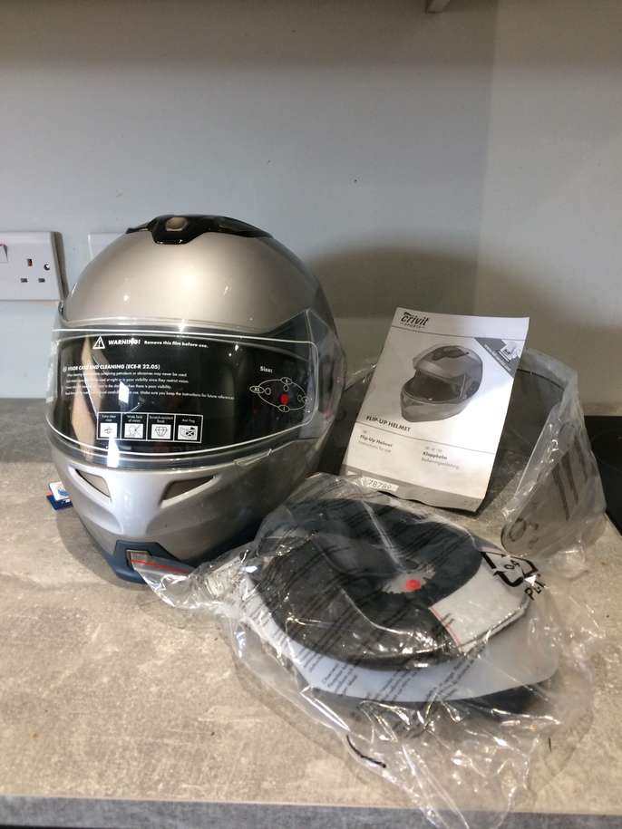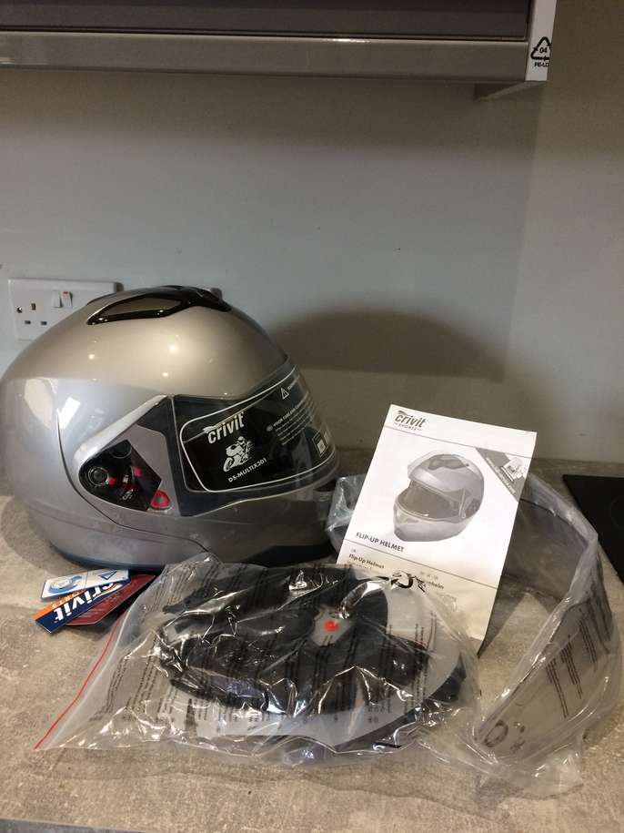 Large size Motorcycle Helmet never used. Will fit 59/60 cm head circumference. Collection only preferably after 5pm or at weekends.